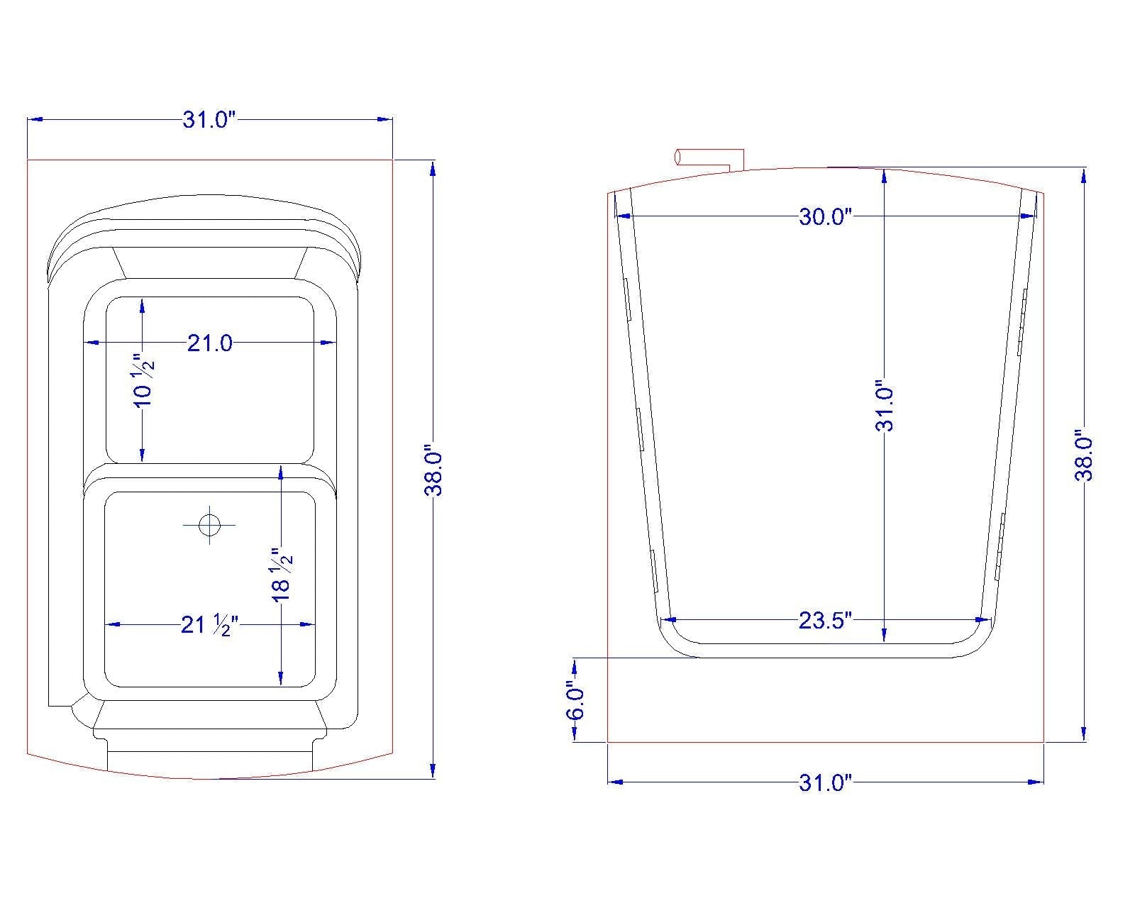 Tub Dimensions: 33″W x 38″L x 40″H