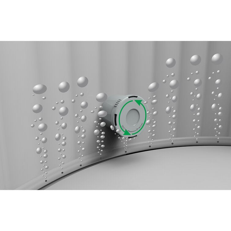 Enjoy total relaxation in your own backyard with the inflatable bubble spa. The hot tub features walls that are made of 3 ply material for durability and ultimate comfort. The spa inflates in minutes and the rapid heating system quickly heats the water up to 104 degrees. The hot temperature combined with the AirJet massage system is perfect for soothing sore muscles or lounging after a long day. With the touch of a button activate the 110 soothing bubble jets that surround the interior of the spa or adjust the temperature that best suits your comfort level. This round inflatable hot tub comes with everything you need to enjoy your spa, including an insulated cover with double-locking safety clips, a floor protector, 2 filtration kits, a flexible inflation hose, and a repair patch.Enjoy total relaxation in your own backyard with the inflatable bubble spa. The hot tub features walls that are made of 3 ply material for durability and ultimate comfort. The spa inflates in minutes and the rapid heating system quickly heats the water up to 104 degrees. The hot temperature combined with the AirJet massage system is perfect for soothing sore muscles or lounging after a long day. With the touch of a button activate the 110 soothing bubble jets that surround the interior of the spa or adjust the temperature that best suits your comfort level. This round inflatable hot tub comes with everything you need to enjoy your spa, including an insulated cover with double-locking safety clips, a floor protector, 2 filtration kits, a flexible inflation hose, and a repair patch.Enjoy total relaxation in your own backyard with the inflatable bubble spa. The hot tub features walls that are made of 3 ply material for durability and ultimate comfort. The spa inflates in minutes and the rapid heating system quickly heats the water up to 104 degrees. The hot temperature combined with the AirJet massage system is perfect for soothing sore muscles or lounging after a long day. With the touch of a button activate the 110 soothing bubble jets that surround the interior of the spa or adjust the temperature that best suits your comfort level. This round inflatable hot tub comes with everything you need to enjoy your spa, including an insulated cover with double-locking safety clips, a floor protector, 2 filtration kits, a flexible inflation hose, and a repair patch.