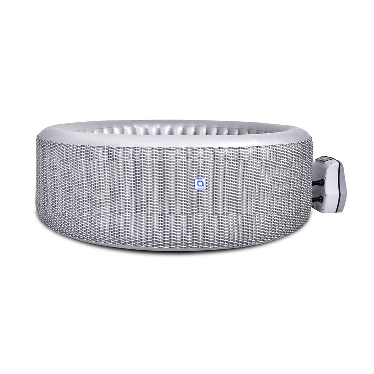 Enjoy total relaxation in your own backyard with the inflatable bubble spa. The hot tub features walls that are made of 3 ply material for durability and ultimate comfort. The spa inflates in minutes and the rapid heating system quickly heats the water up to 104 degrees. The hot temperature combined with the AirJet massage system is perfect for soothing sore muscles or lounging after a long day. With the touch of a button activate the 110 soothing bubble jets that surround the interior of the spa or adjust the temperature that best suits your comfort level. This round inflatable hot tub comes with everything you need to enjoy your spa, including an insulated cover with double-locking safety clips, a floor protector, 2 filtration kits, a flexible inflation hose, and a repair patch.Enjoy total relaxation in your own backyard with the inflatable bubble spa. The hot tub features walls that are made of 3 ply material for durability and ultimate comfort. The spa inflates in minutes and the rapid heating system quickly heats the water up to 104 degrees. The hot temperature combined with the AirJet massage system is perfect for soothing sore muscles or lounging after a long day. With the touch of a button activate the 110 soothing bubble jets that surround the interior of the spa or adjust the temperature that best suits your comfort level. This round inflatable hot tub comes with everything you need to enjoy your spa, including an insulated cover with double-locking safety clips, a floor protector, 2 filtration kits, a flexible inflation hose, and a repair patch.Enjoy total relaxation in your own backyard with the inflatable bubble spa. The hot tub features walls that are made of 3 ply material for durability and ultimate comfort. The spa inflates in minutes and the rapid heating system quickly heats the water up to 104 degrees. The hot temperature combined with the AirJet massage system is perfect for soothing sore muscles or lounging after a long day. With the touch of a button activate the 110 soothing bubble jets that surround the interior of the spa or adjust the temperature that best suits your comfort level. This round inflatable hot tub comes with everything you need to enjoy your spa, including an insulated cover with double-locking safety clips, a floor protector, 2 filtration kits, a flexible inflation hose, and a repair patch.
