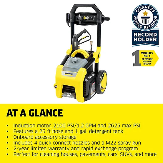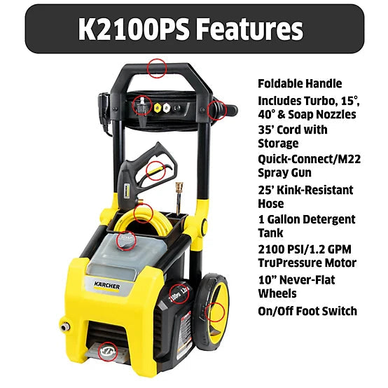 Karcher K2100PS Electric Pressure Washer, 2100 PSI, 1.2 GPM Cold Water Turbo 15° & 40