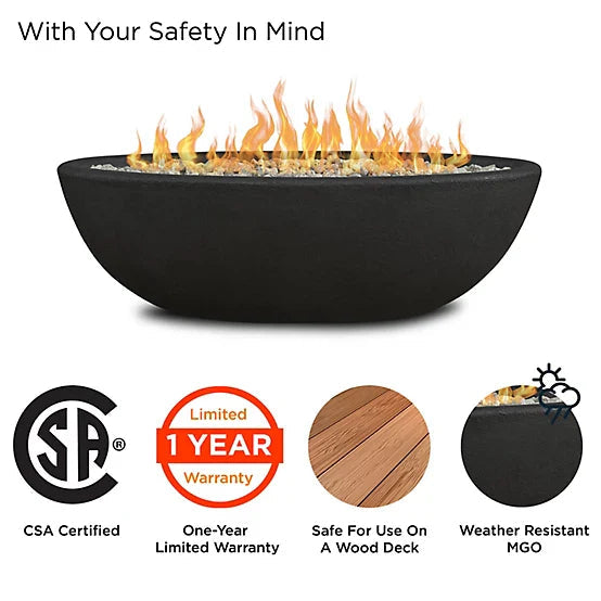 Transform your outdoor space into a cozy, stylish retreat with the Real Flame Riverside Oval Propane Gas Fire Bowl. Designed with a natural finish and modern oval shape, this fire bowl adds warmth and ambiance to any patio, deck, or backyard. The push-button ignition provides easy lighting, while the weather-resistant construction ensures durability for years to come.